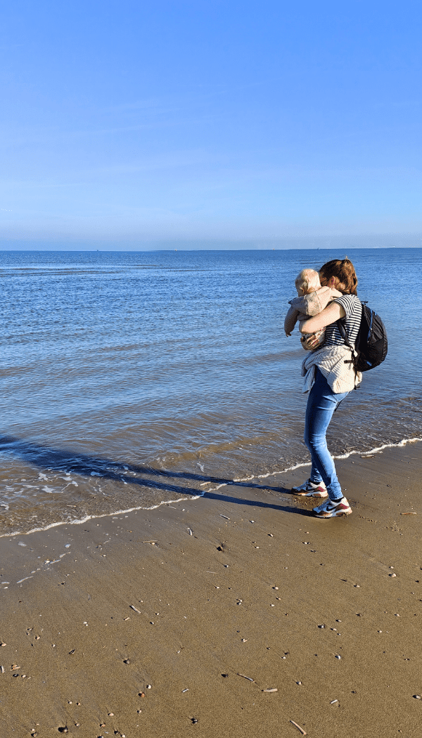 Voor onze kleine Veere was het haar eerste kennismaking met de zee. En hoewel ze nog maar een paar woordjes brabbelt, was het overduidelijk dat ze het indrukwekkend vond. De golven, het eindeloze water, het zand tussen haar vingertjes. Verwondering in haar puurste vorm.